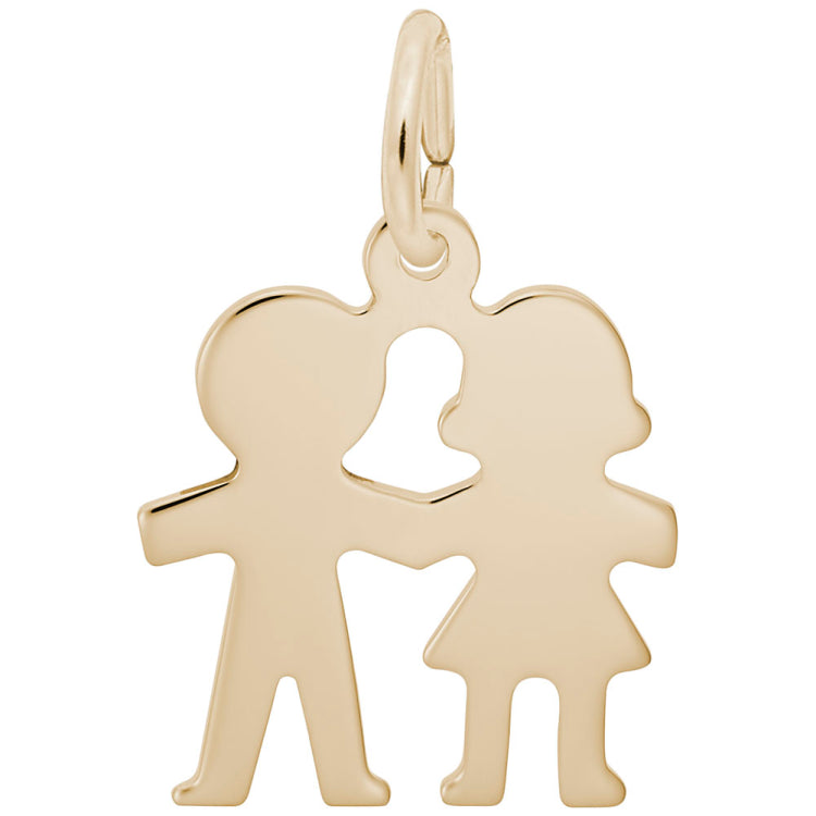 The Boy & Girl Holding Hands Charm is perfect for any mom with a son and daughter. This charm can also be given to any first love and is available in silver and gold