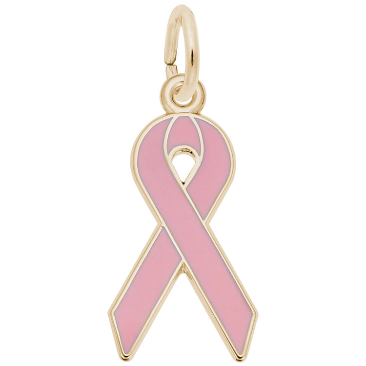 Think pink and support the cause with the Breast Cancer Awareness Ribbon Charm. A portion from this charitable charm will benefit research and education. Available in silver and gold