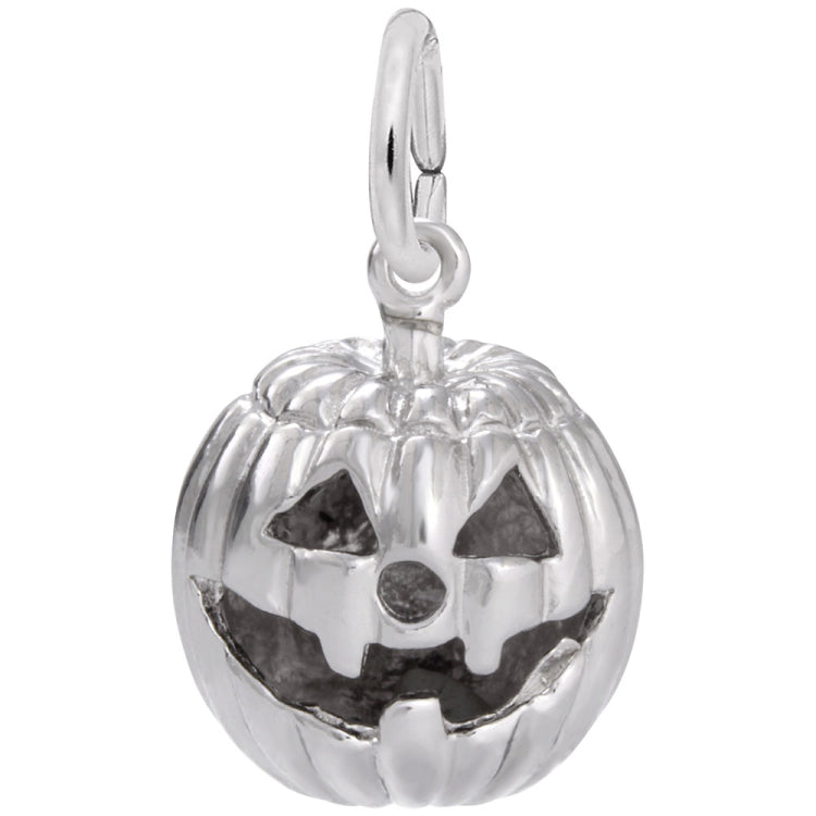 Scare up some fun this Halloween with our Jack O' Lantern Charm. This friendly carved pumpkin is available in silver and gold.