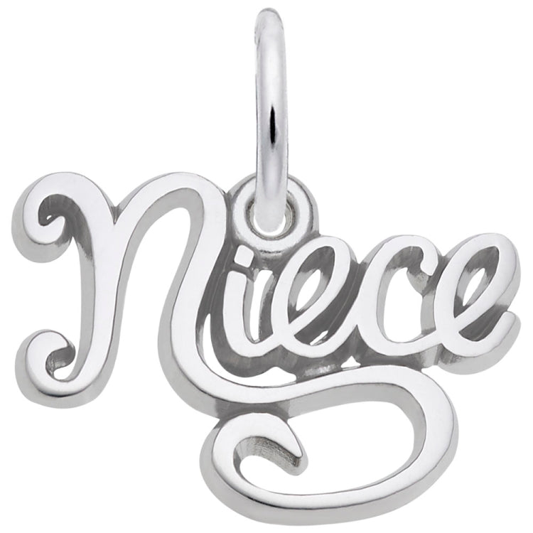 The Niece Script Charm is perfect for any aunt to give her niece. If she's younger get her the Grow With Me Bracelet to hold this charm and add to it every year. This charm is available in silver and gold.
