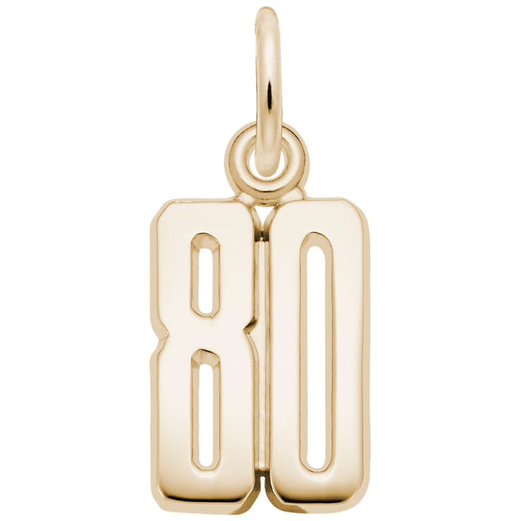 Do you have a special anniversary or birthday? Wear it proudly on your charm bracelet with the That's My Number Eighty Charm. Available in silver and gold.