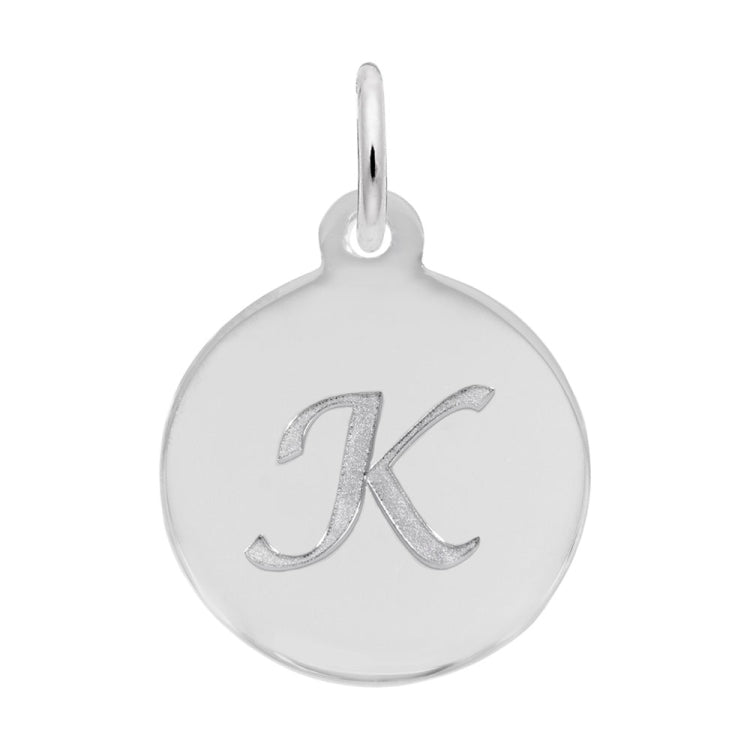 Our Script Initial Disc Charm is letter perfect in a script font. Spell out how much you love her with a single initial or several added to her favorite bracelet. The entire alphabet is available in silver and gold. Engravable on back.