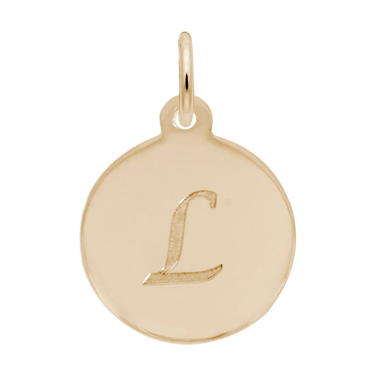 Our Script Initial Disc Charm is letter perfect in a script font. Spell out how much you love her with a single initial or several added to her favorite bracelet. The entire alphabet is available in silver and gold. Engravable on back.