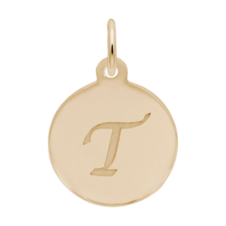 Our Script Initial Disc Charm is letter perfect in a script font. Spell out how much you love her with a single initial or several added to her favorite bracelet. The entire alphabet is available in silver and gold. Engravable on back.