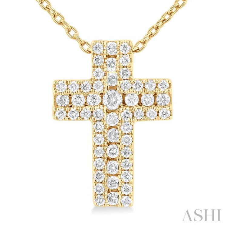 1/4 Ctw Cross Round Cut Diamond Fashion Pendant With Chain in 14K Yellow Gold