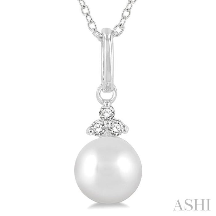6 MM Round Shape Cultured Pearl and 1/50 Ctw Round Cut Diamond Petite Fashion Pendant With Chain in 10K White Gold