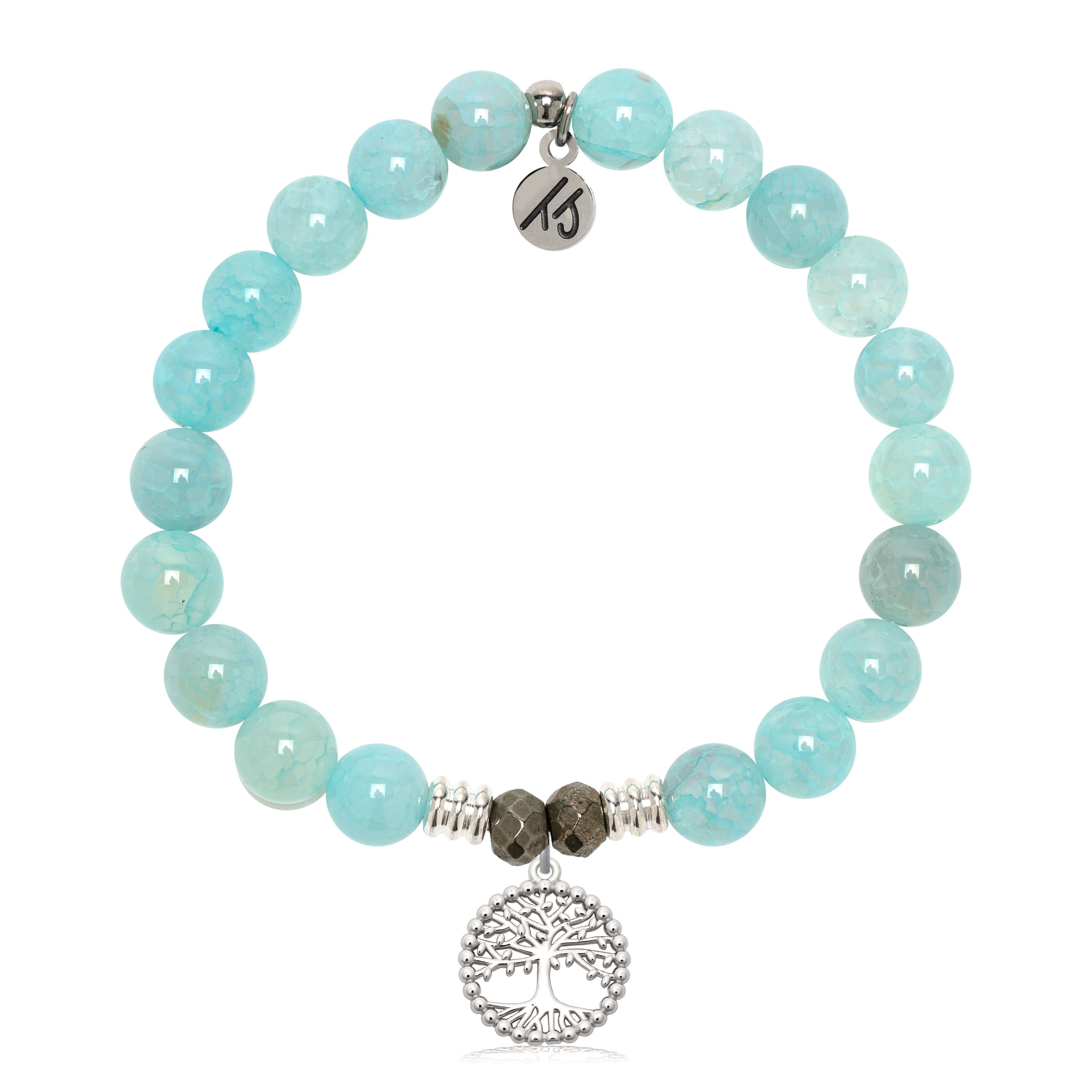Aqua Fire Agate Gemstone Bracelet with Family Tree Sterling Silver Charm