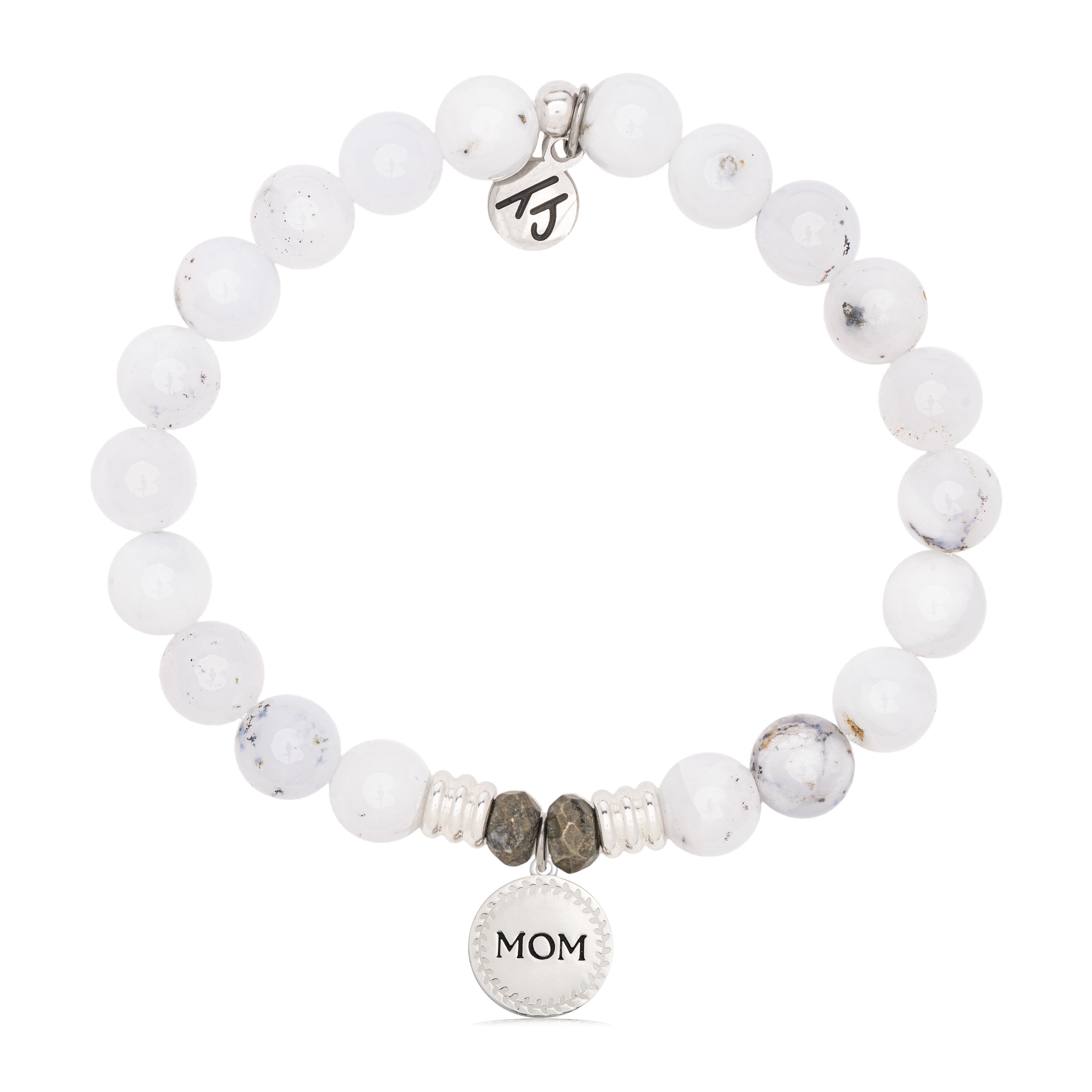 White Chalcedony Gemstone Bracelet with Endless Love Mom Sterling Silver Charm