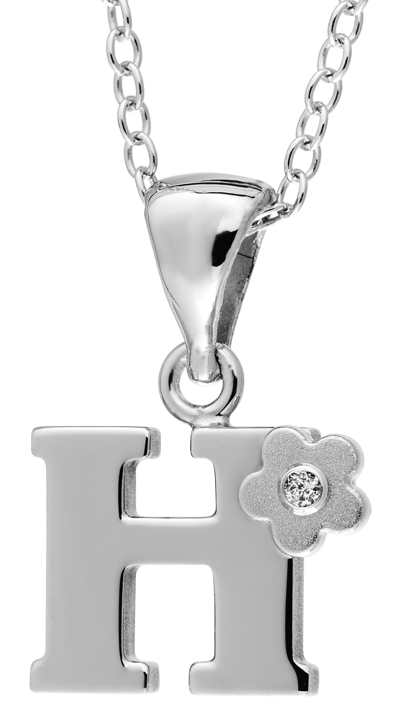 Children's Silver Letter H Pendant With Diamond Flower Accent