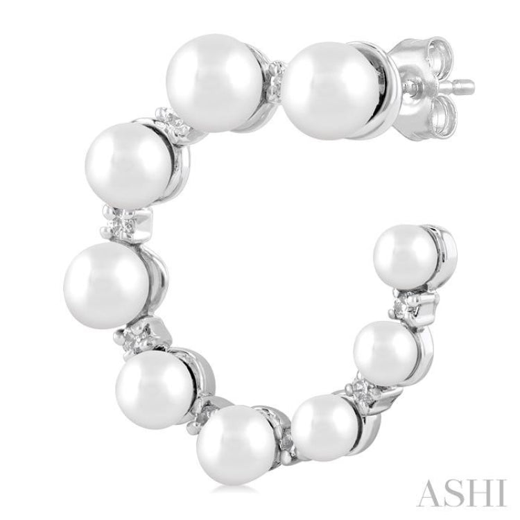 2.8 - 4.5 MM Round Shape Cultured Pearls and 1/5 Ctw Graduated Round Cut Diamond Half Hoop Earring in 14K White Gold