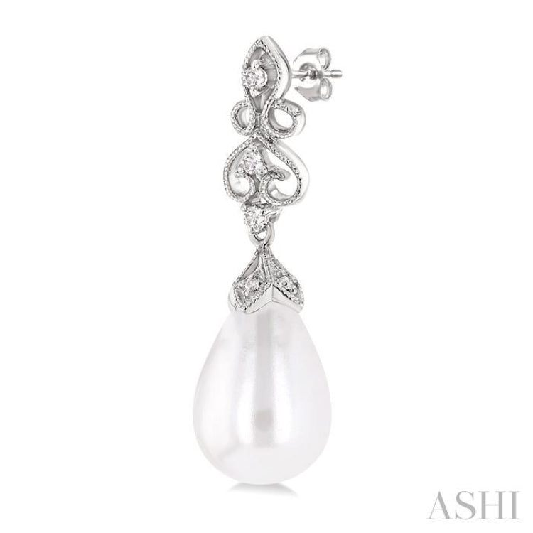 8X6 MM Cultured Pearl and 1/20 Ctw Round Cut Diamond Earrings in 10K White Gold