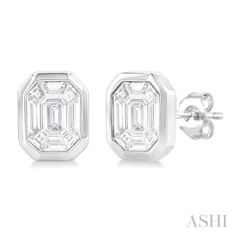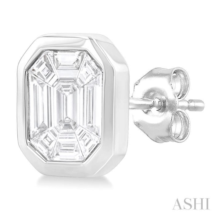 3/8 Ctw Emerald Pie Cut Diamond Fashion Stud Earring in 14K White Gold