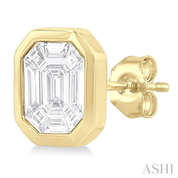 3/8 Ctw Emerald Pie Cut Diamond Fashion Stud Earring in 14K Yellow Gold