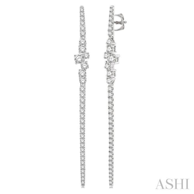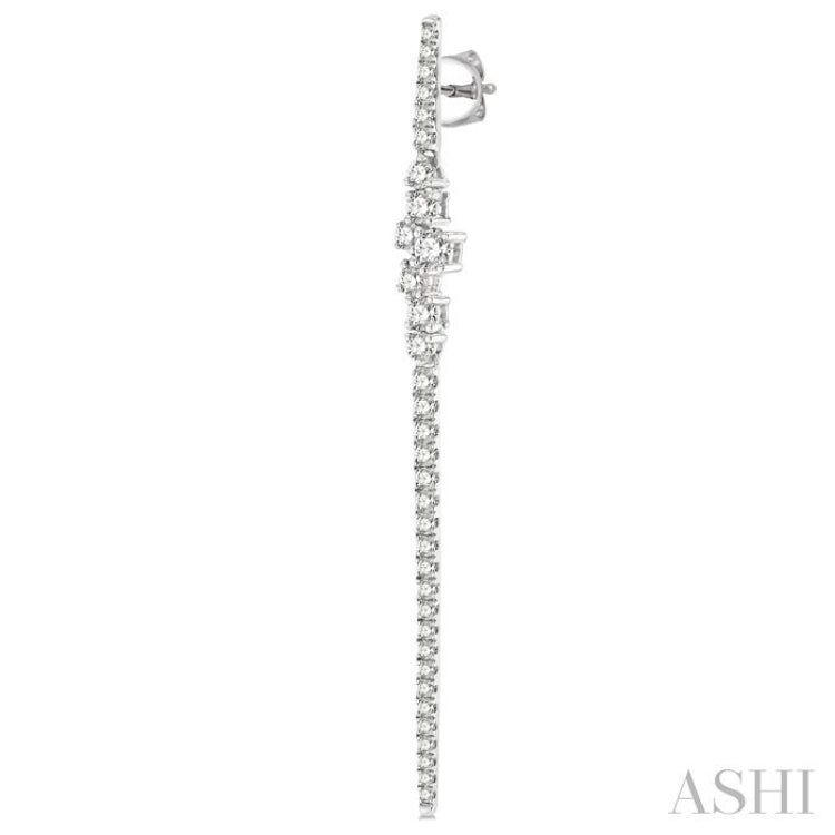 1 Ctw Scatter Center Round Cut Diamond Long Earring in 14K White Gold