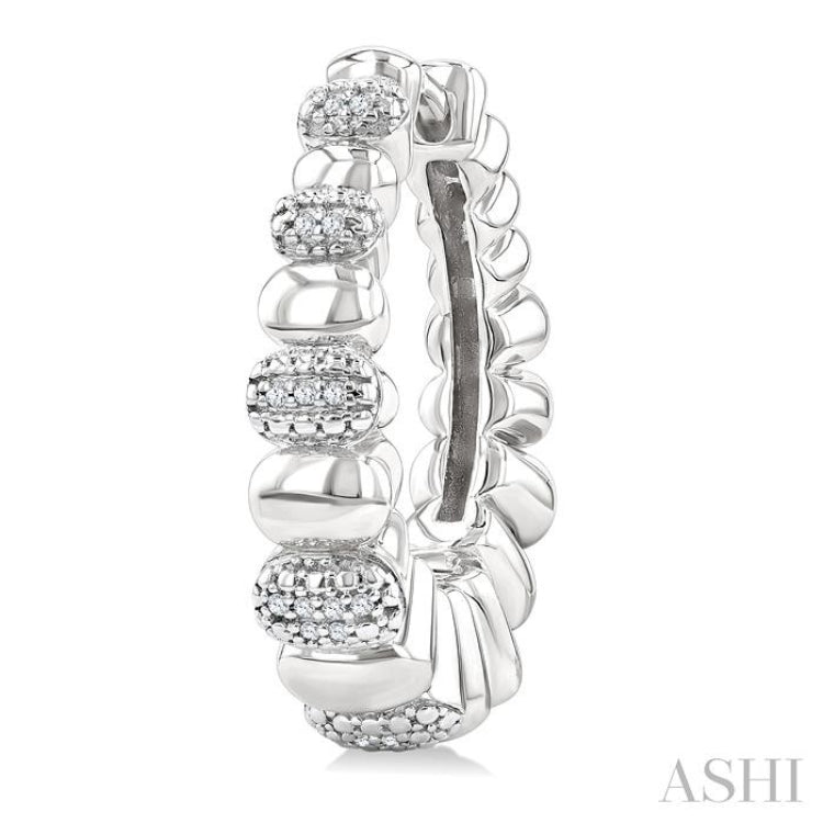 1/10 Ctw Bold Ribbed Single Cut Diamond Hoop Fashion Earrings in Sterling Silver