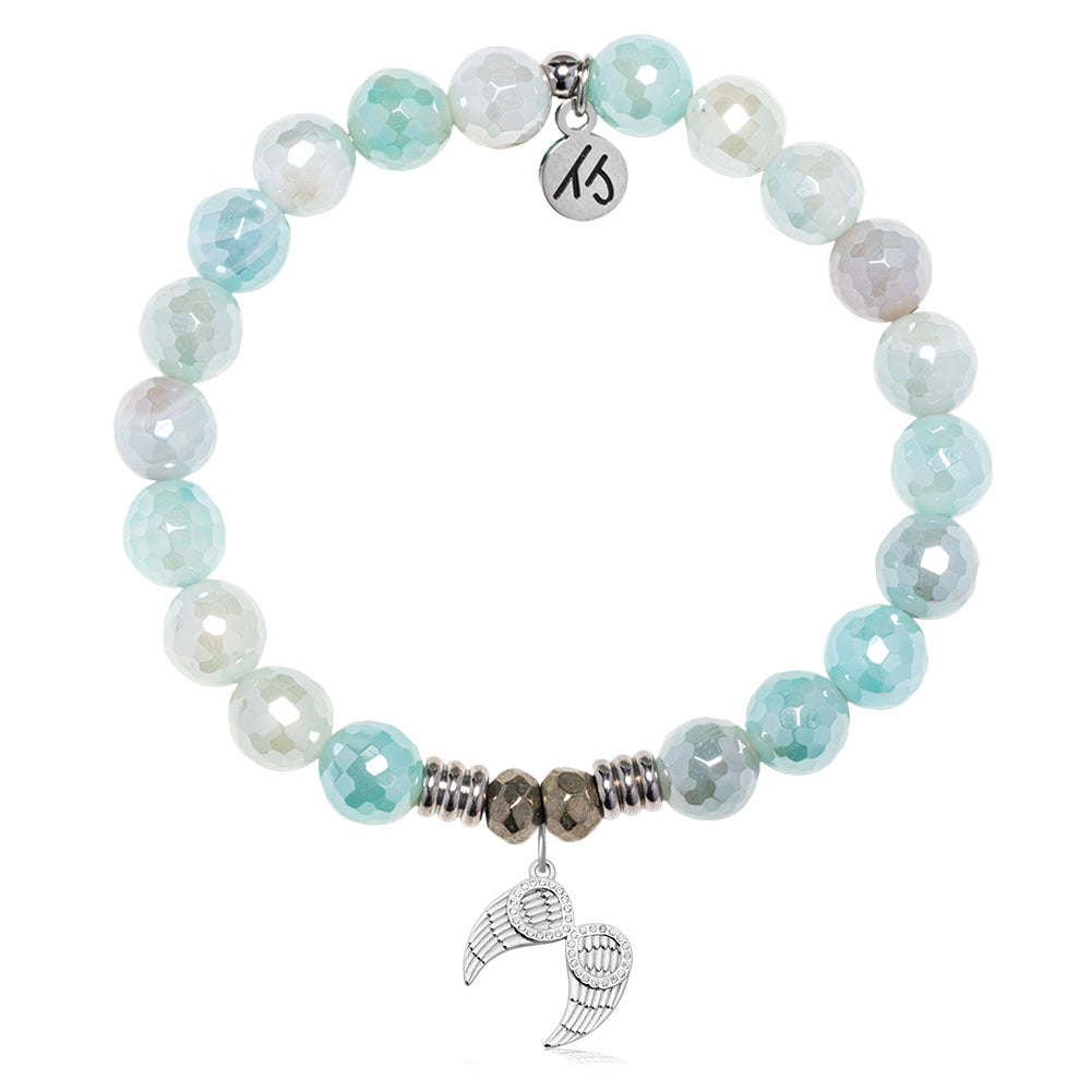 Aqua Agate Gemstone Bracelet with Infinite Protection Sterling Silver Charm
