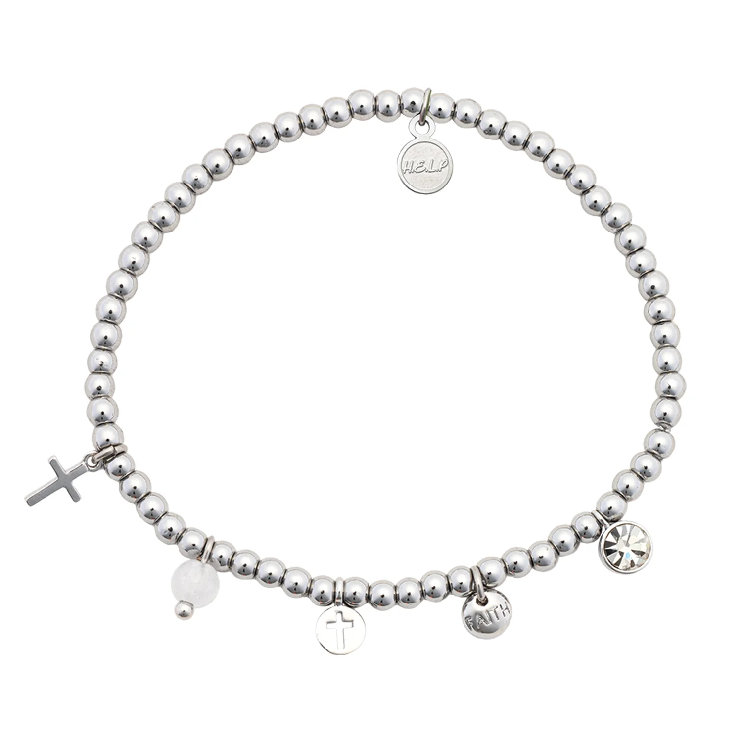 -Charity Charm bracelet handcrafted with 4mm Stainless Steel beads