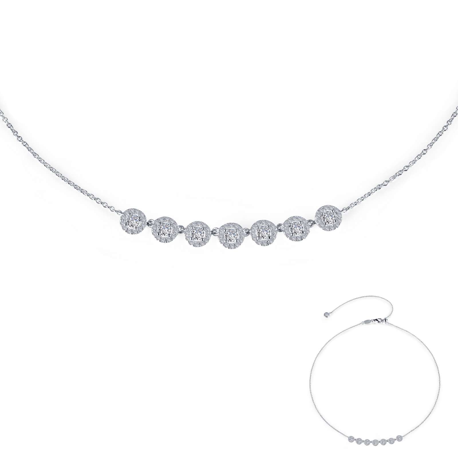 Elegant and timeless. This adjustable 7 Symbols of Joy halo choker necklace features Lafonn's signature Lassaire simulated diamonds set in sterling silver bonded with platinum. May the 7 Symbols of Joy bring you Longevity, Health, Love, Happiness, Peace, Prosperity, & Friendship.