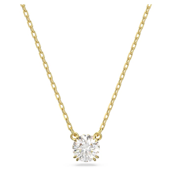 Turn heads in this captivating pendant from the Stilla family. It features dazzling pavé on the side gallery and an exquisite center stone that contrasts beautifully with the gold-tone plated chain, which is artfully finished with three octagon-cut stones. A new wardrobe favorite? We think so.