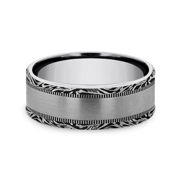 Satin center, mokume patterned edges