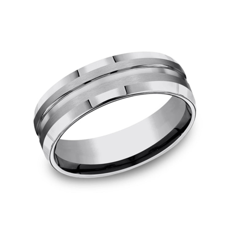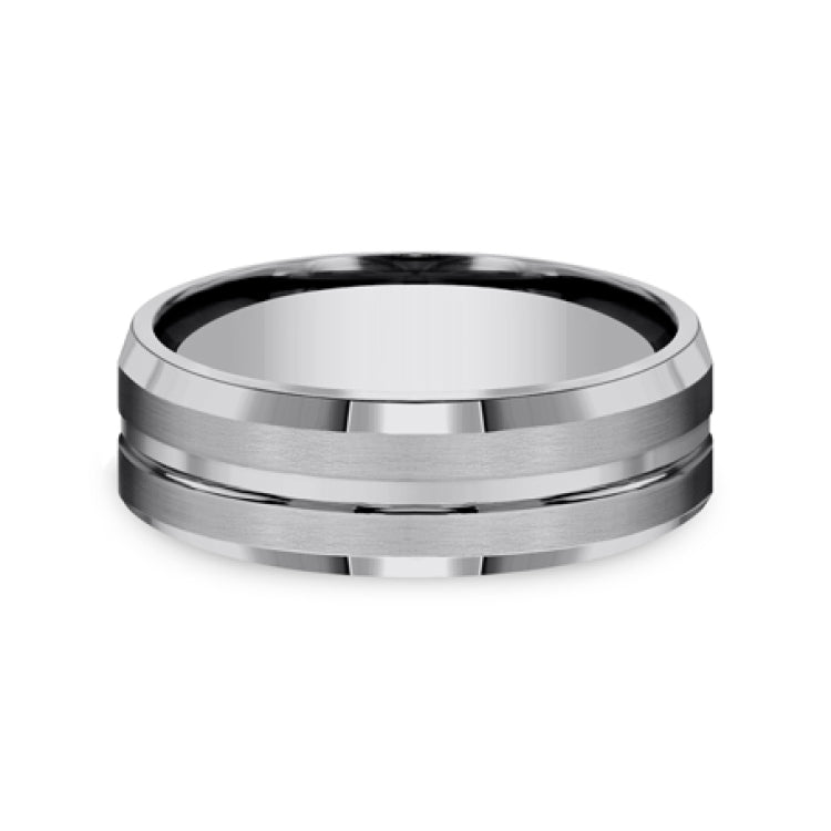 Satin finish, polished concave center cut with polished bevel edges