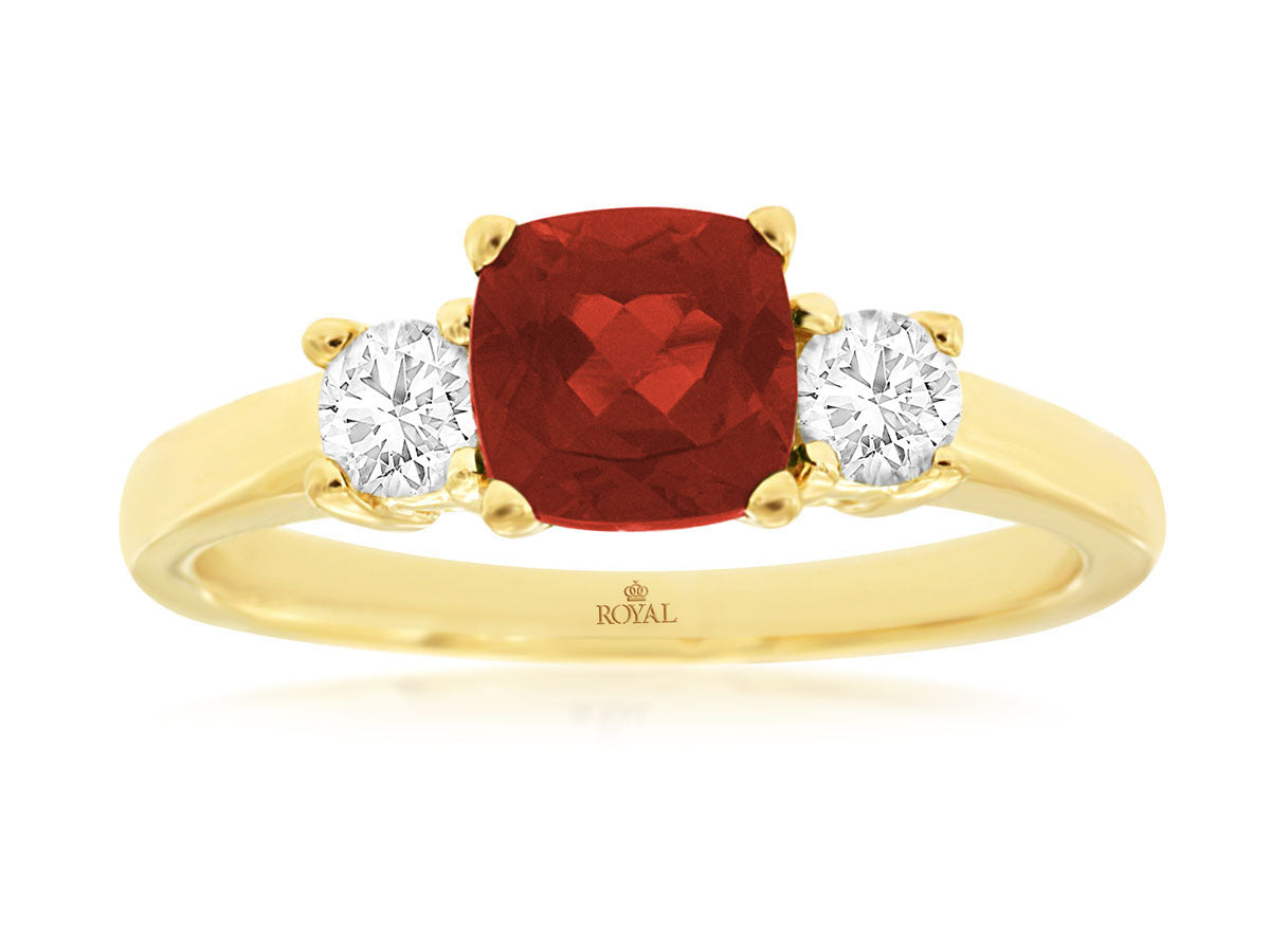 Garnet & Diamond 3-Stone Ring