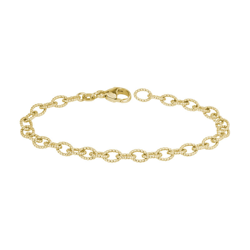 Polished Twisted Cable Link Gold Bracelet, 7"