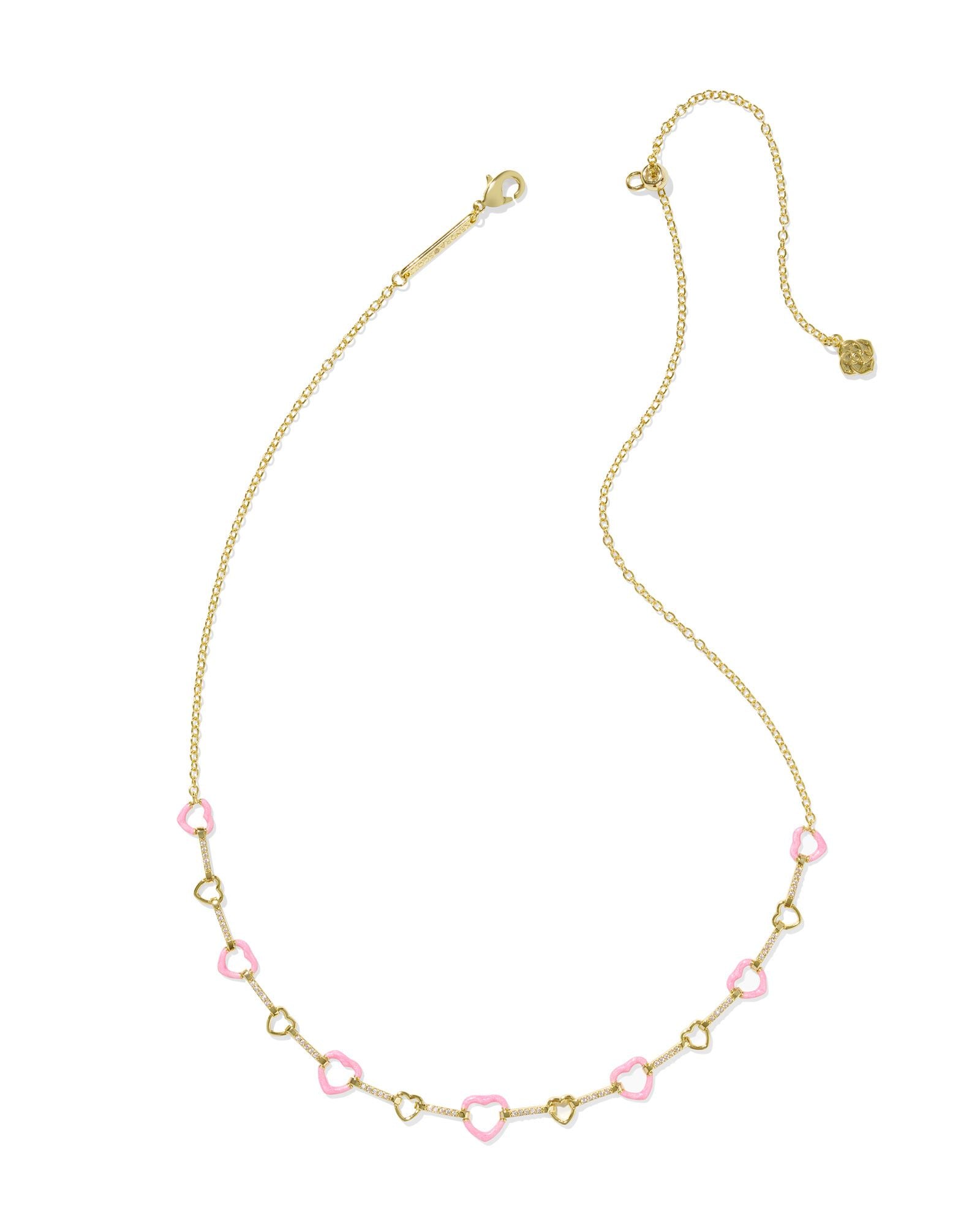 Kendra Scott Haisley Heart Gold Strand Necklace in Pink Pearlescent Enamel