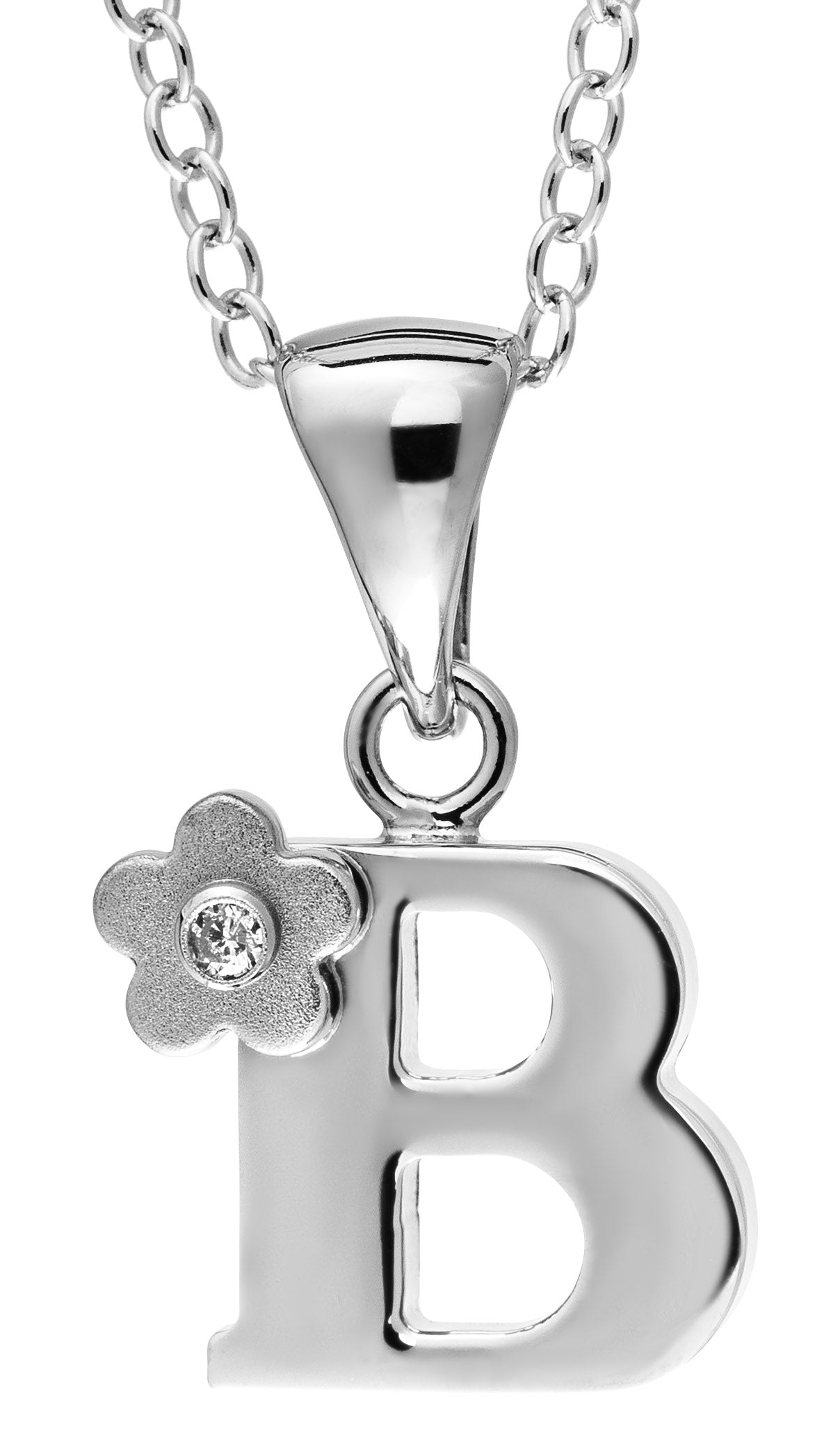Children's Silver Letter B Pendant With Diamond Flower Accent