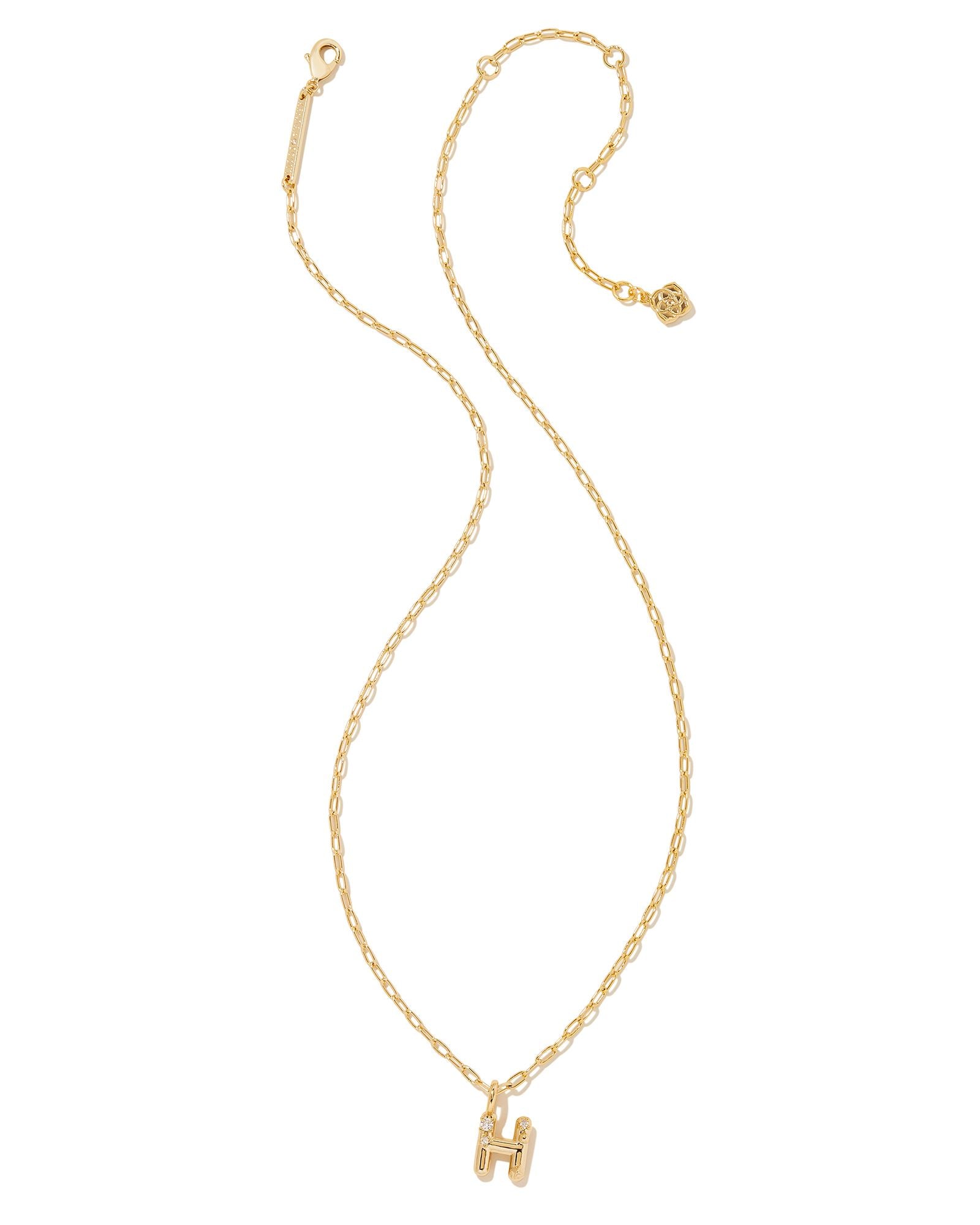 Kendra Scott Crystal Letter H Gold Short Pendant Necklace in White Crystal