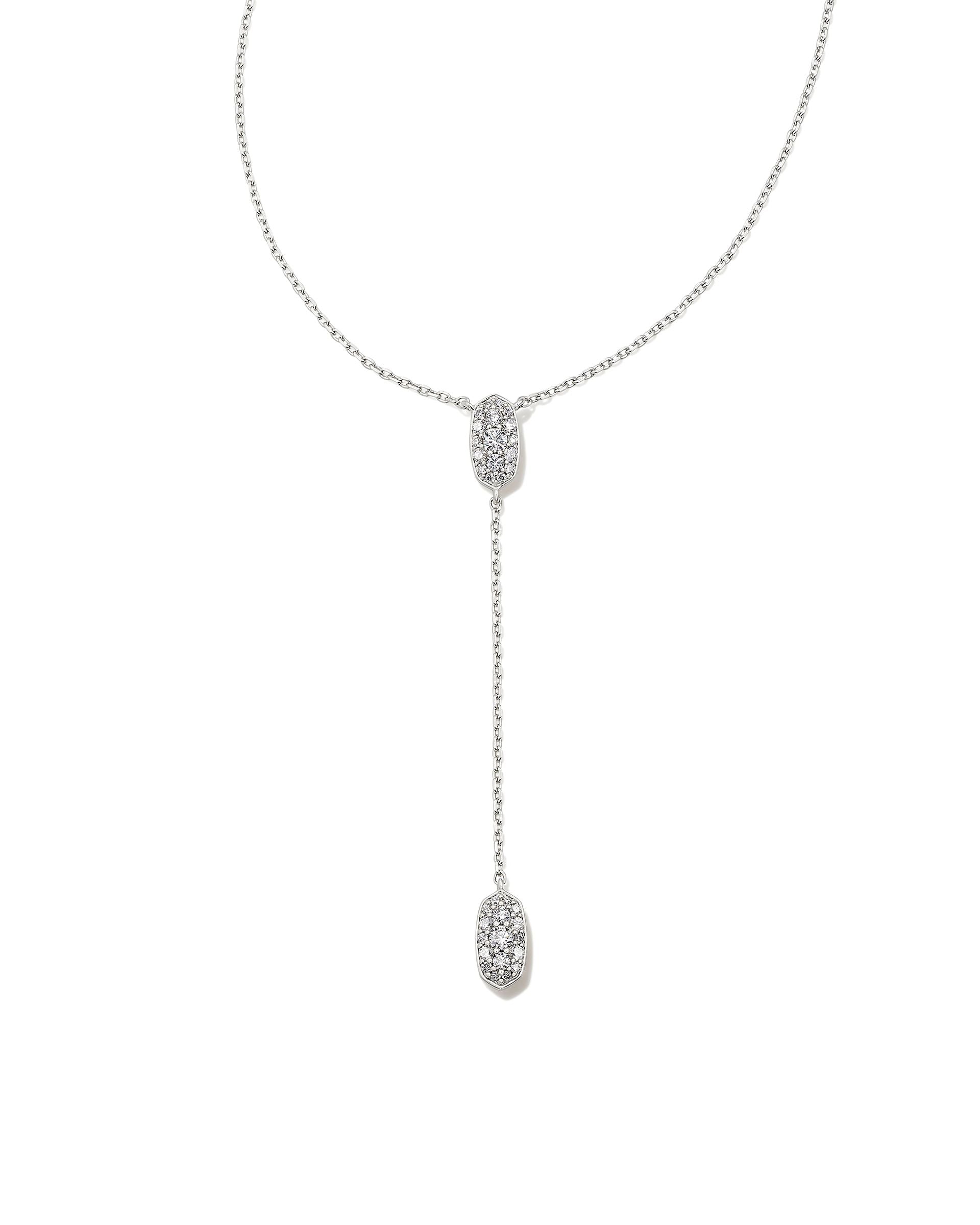 Kendra Scott Grayson Silver Y Necklace in White Crystal