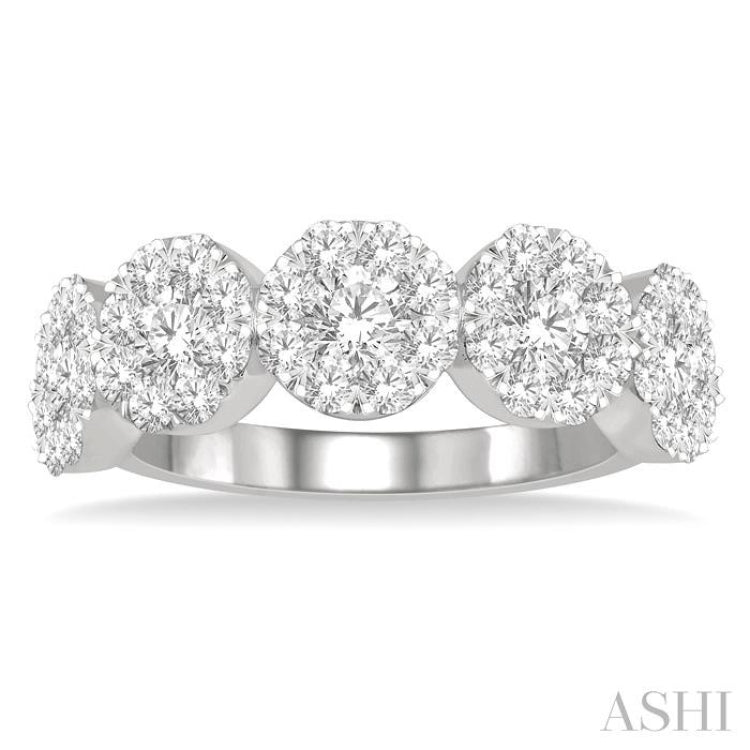 1 1/2 Ctw 5-Stone Lovebright Round Cut Diamond Ring in 14K White Gold