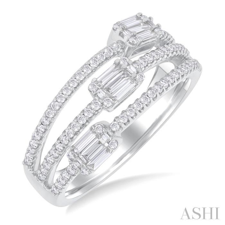 5/8 Ctw Split Three-Row Baguette and Round Cut Diamond Fashion Ring in 14K White Gold