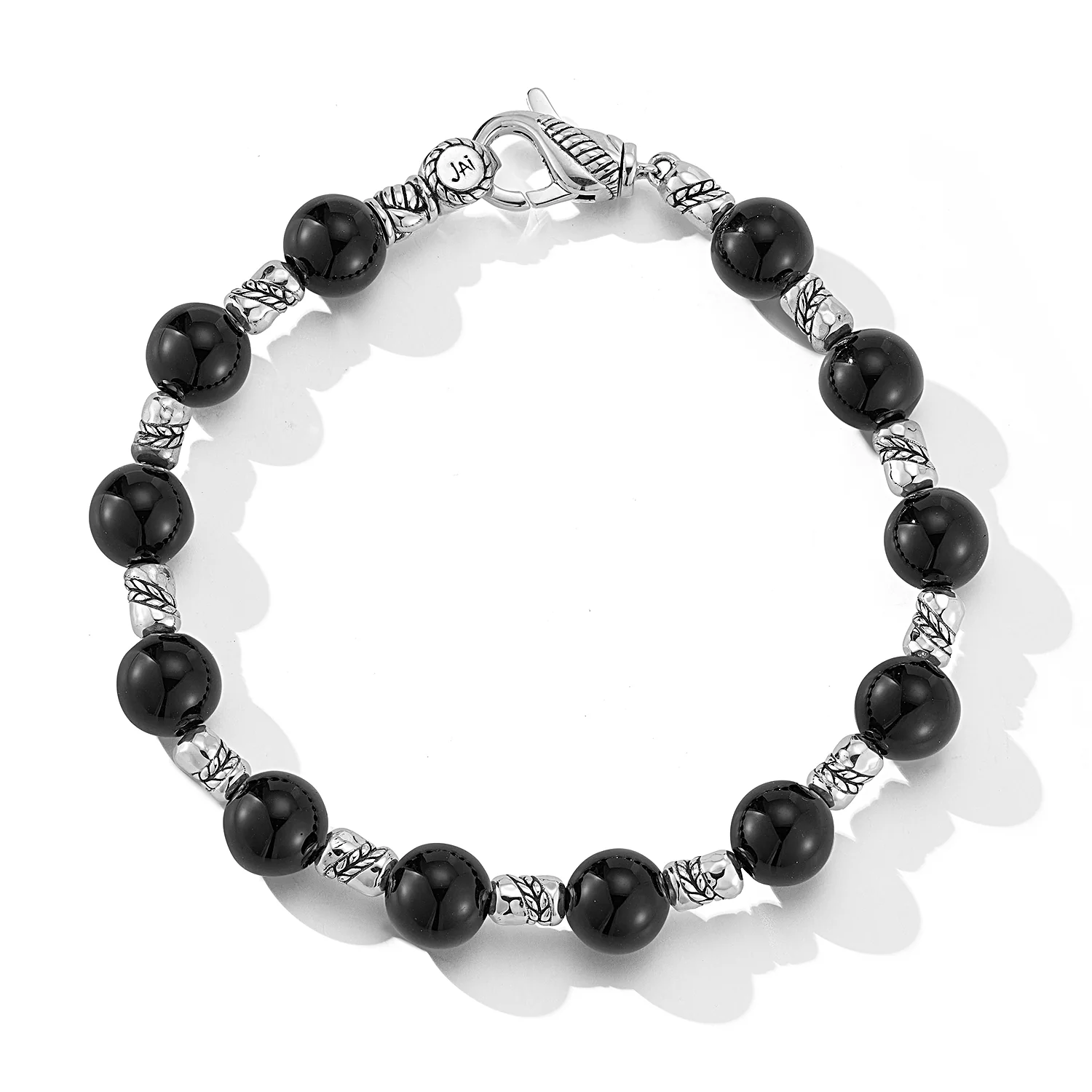 JAI Sterling Silver Black Onyx Bead Bracelet