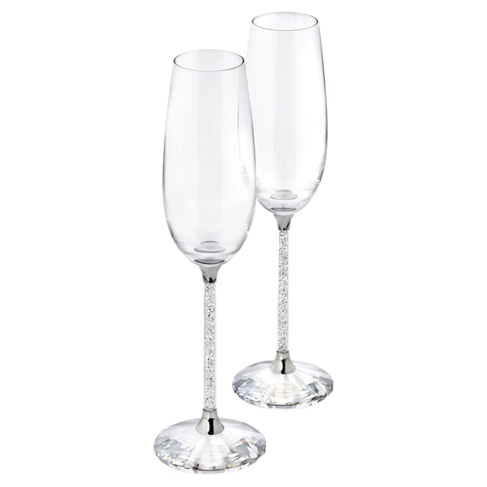 Delicate, elegant, and very festive, this is a set of two flutes for very special occasions. The clear crystal that fills the stems and the faceted clear crystal base of each of these adds an element of romance to any evening - making it a touch more special. Decoration object. Not a toy. Not suitable for children under 15.