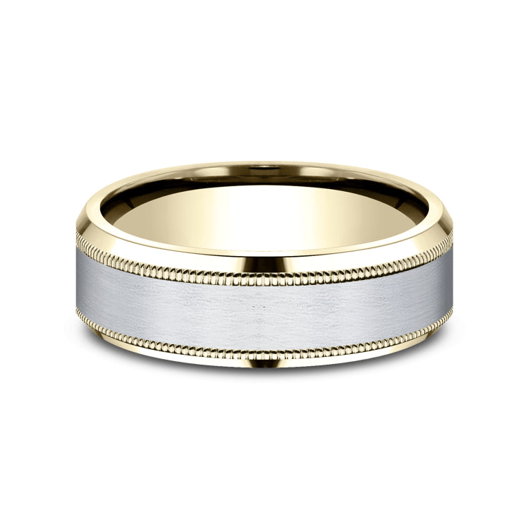 Satin center, milgrain detailing, polished bevel edges